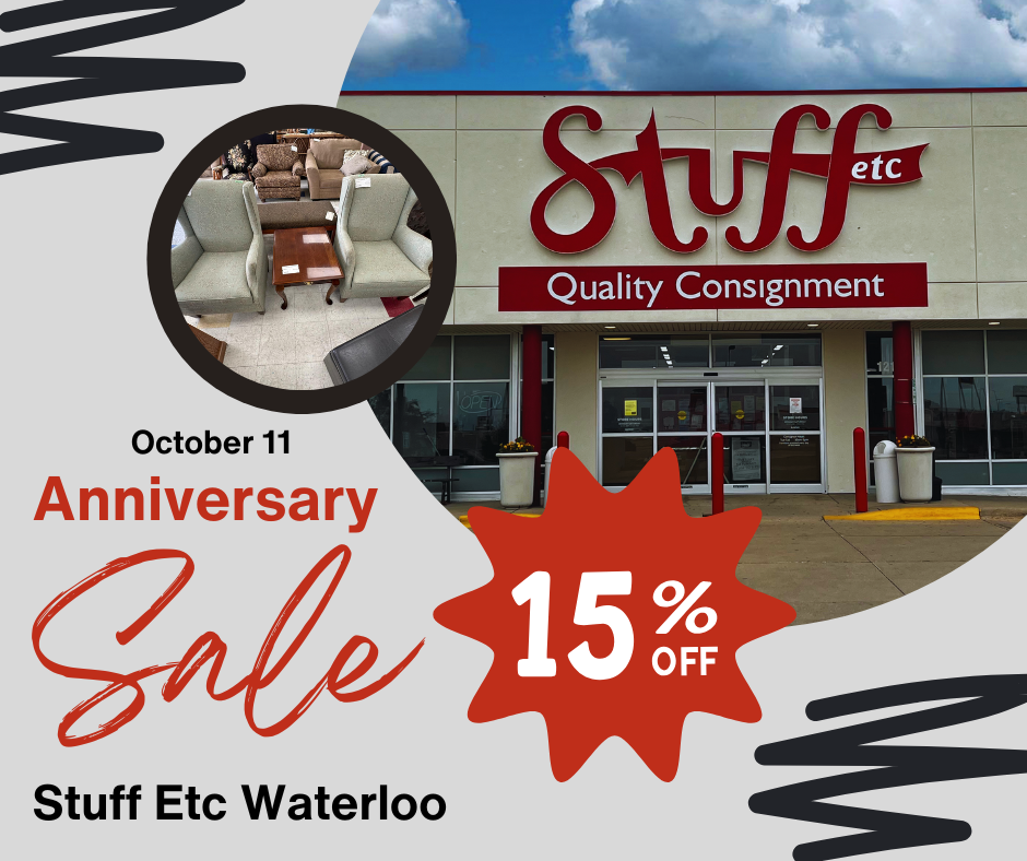 Save 15% on all full priced items PLUS gift card drawings all day! Only at Stuff Etc Waterloo!!